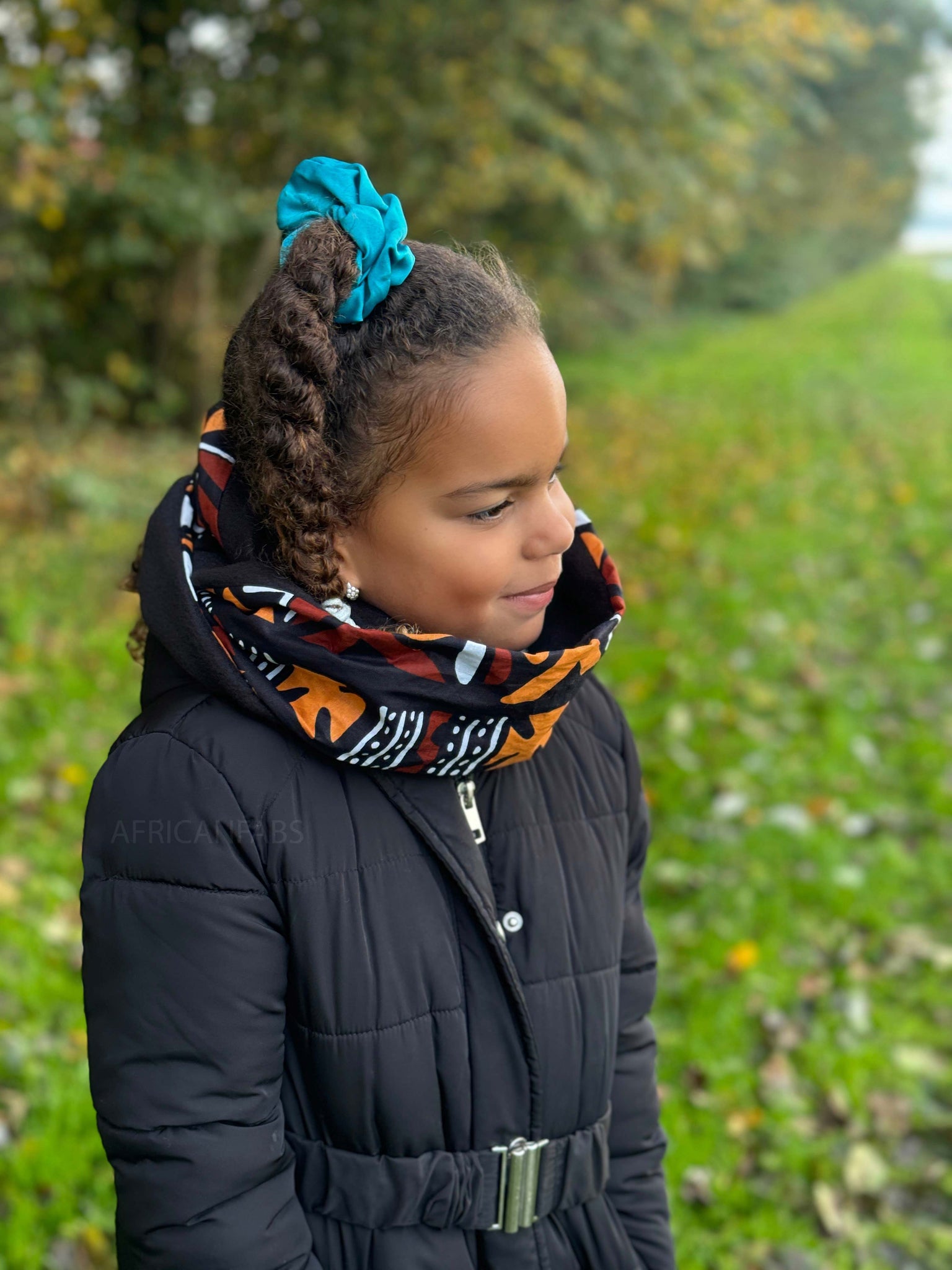 African print Turtleneck Winter scarf for Kids Unisex - Brown Bogolan