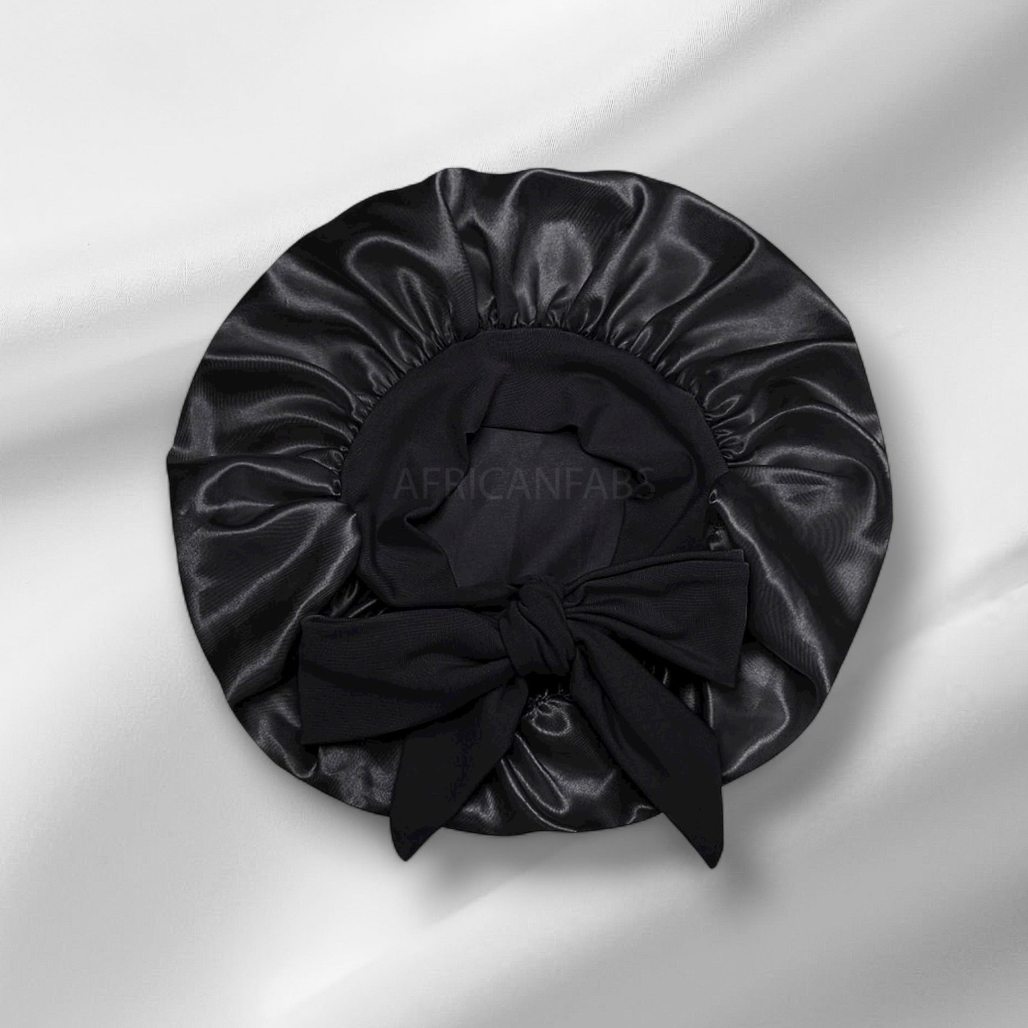Black Satin Hair Bonnet with Tie Straps (Kids / Children's size 3-7 years) ( Satin Night sleep cap)