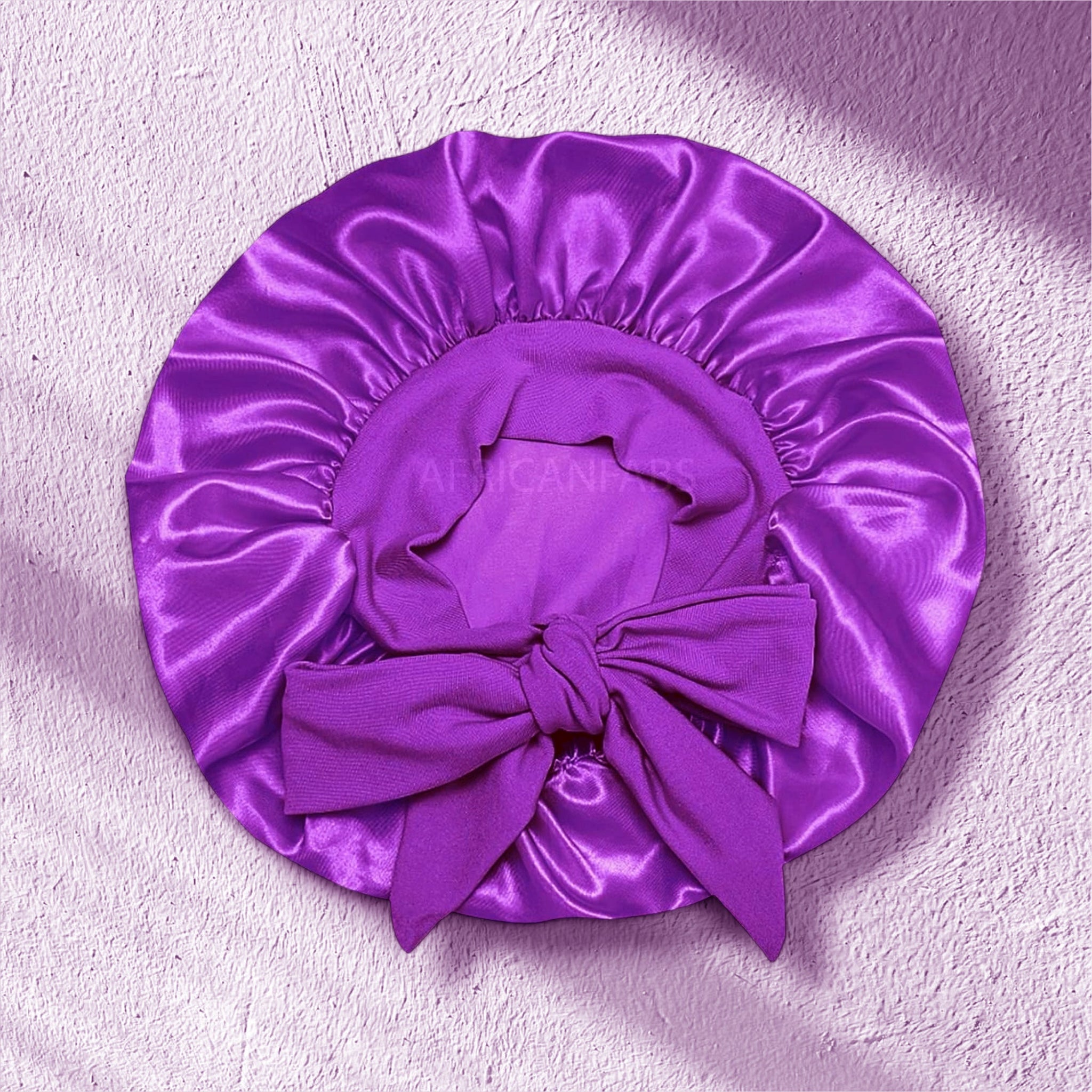 Purple Satin Hair Bonnet with Tie Straps (Kids / Children's size 3-7 years) ( Satin Night sleep cap)