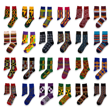 Mix of 24 different pairs - African socks / Afro socks / African print socks - All 24 styles