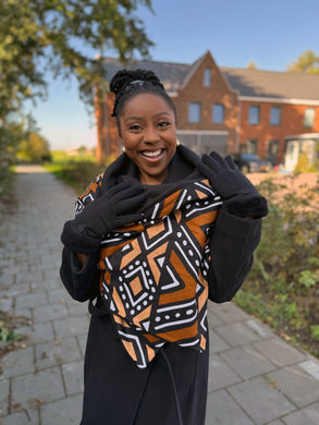African print Winter scarf for Adults Unisex - Kente Mud Black / orange