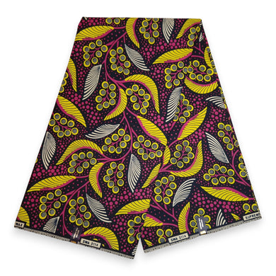 6 Yards - Afrikanischer Wax Print Stoff - Braun und Grün Leaves And Berries - 100% Baumwolle