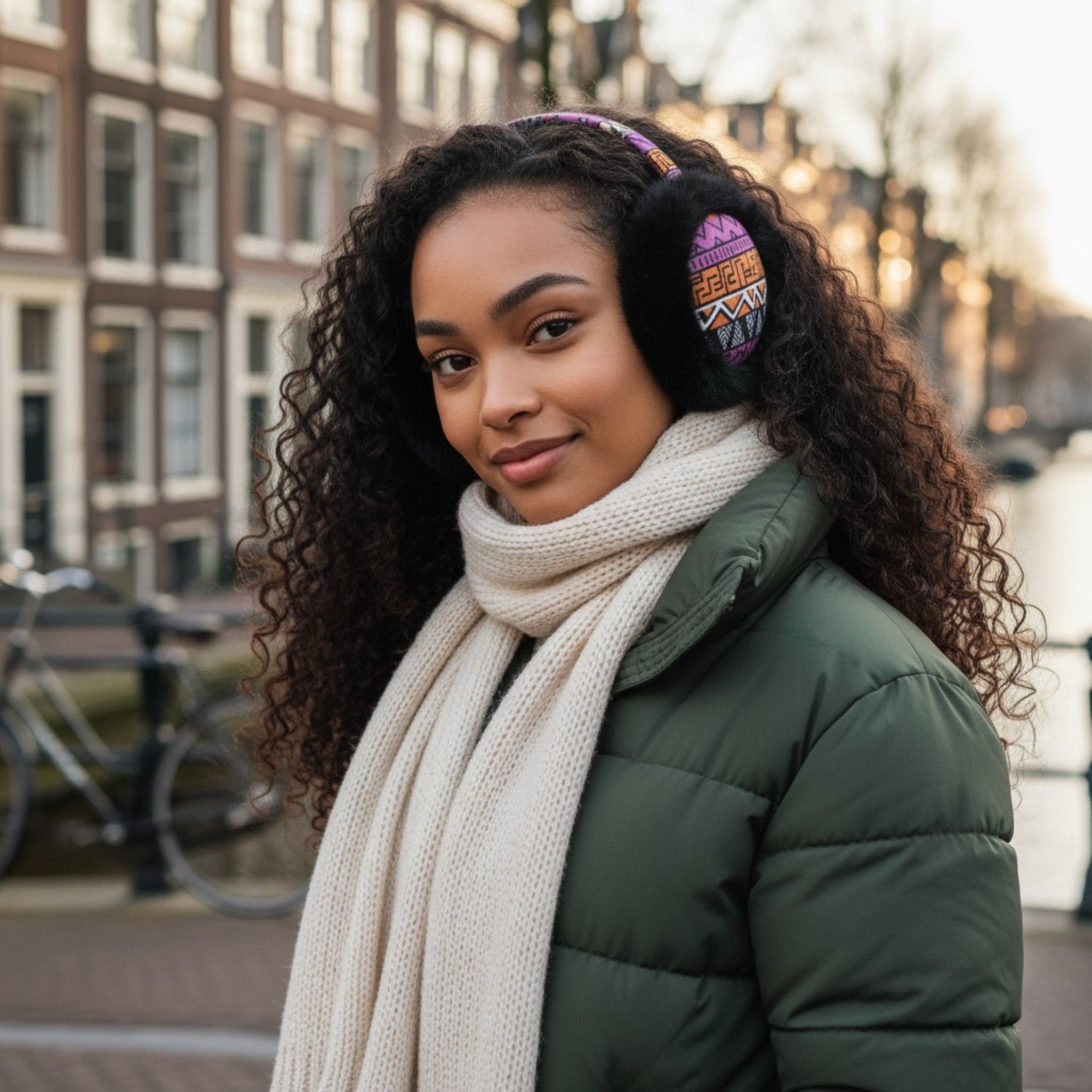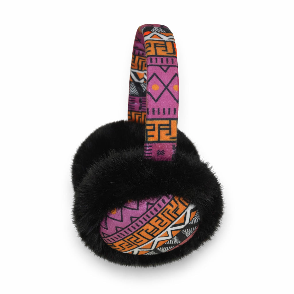 African Print Earmuffs - Foldable Winter Ear Warmers - Pink Orange Tribal