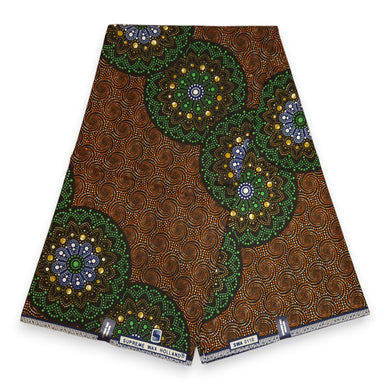 6 Yards - Afrikanischer Wax Print Stoff - Orange und Braun Sacred Circle Patterns - 100% Baumwolle