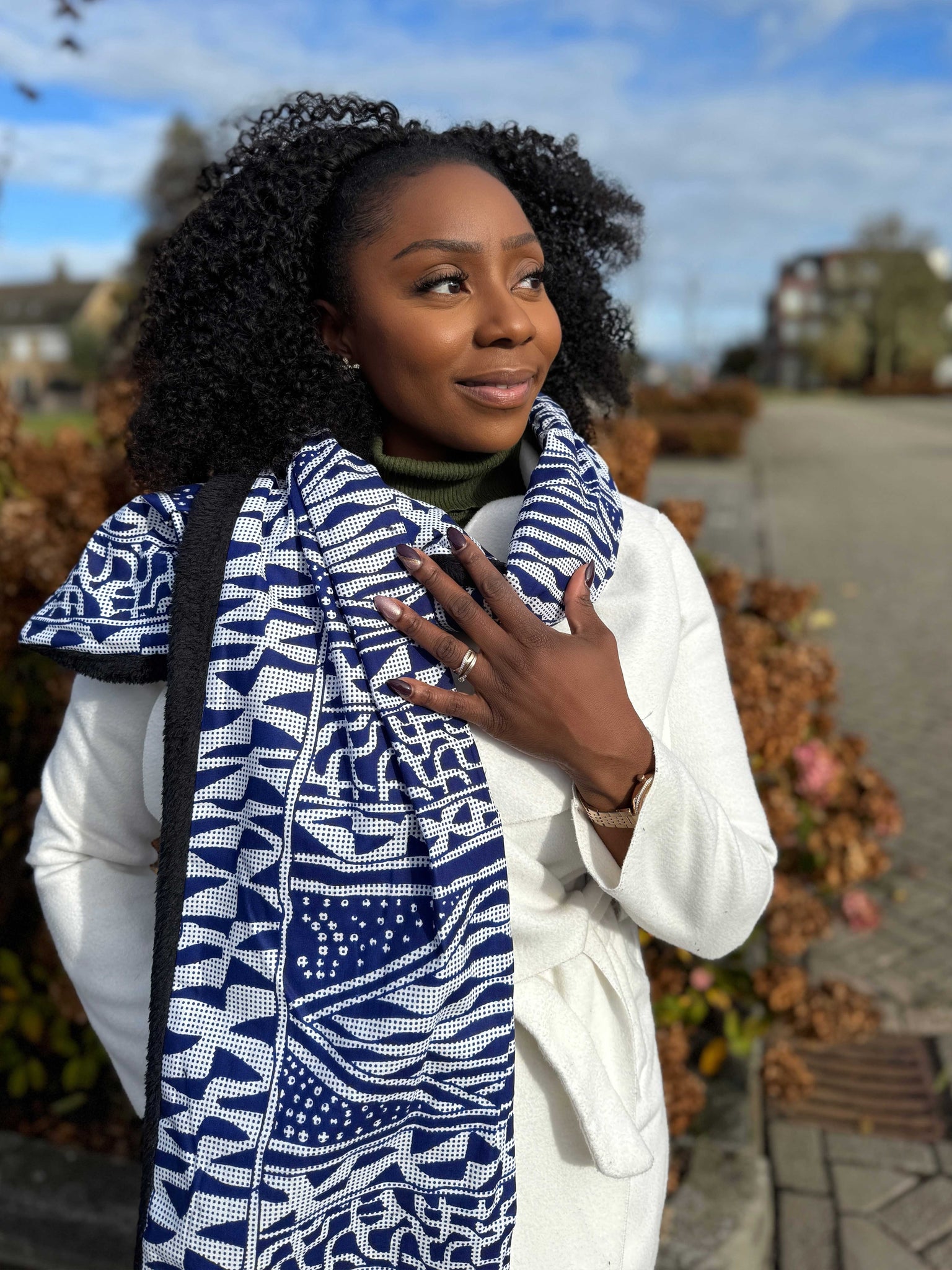 Consists of one warm royal wellness fleece layer and one layer of African print fabric (100% cotton)