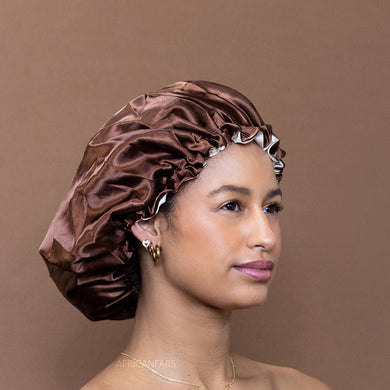 Chocoladebruine satijnen haarmuts (verstelbare en omkeerbare satijnen nacht slaapmuts)