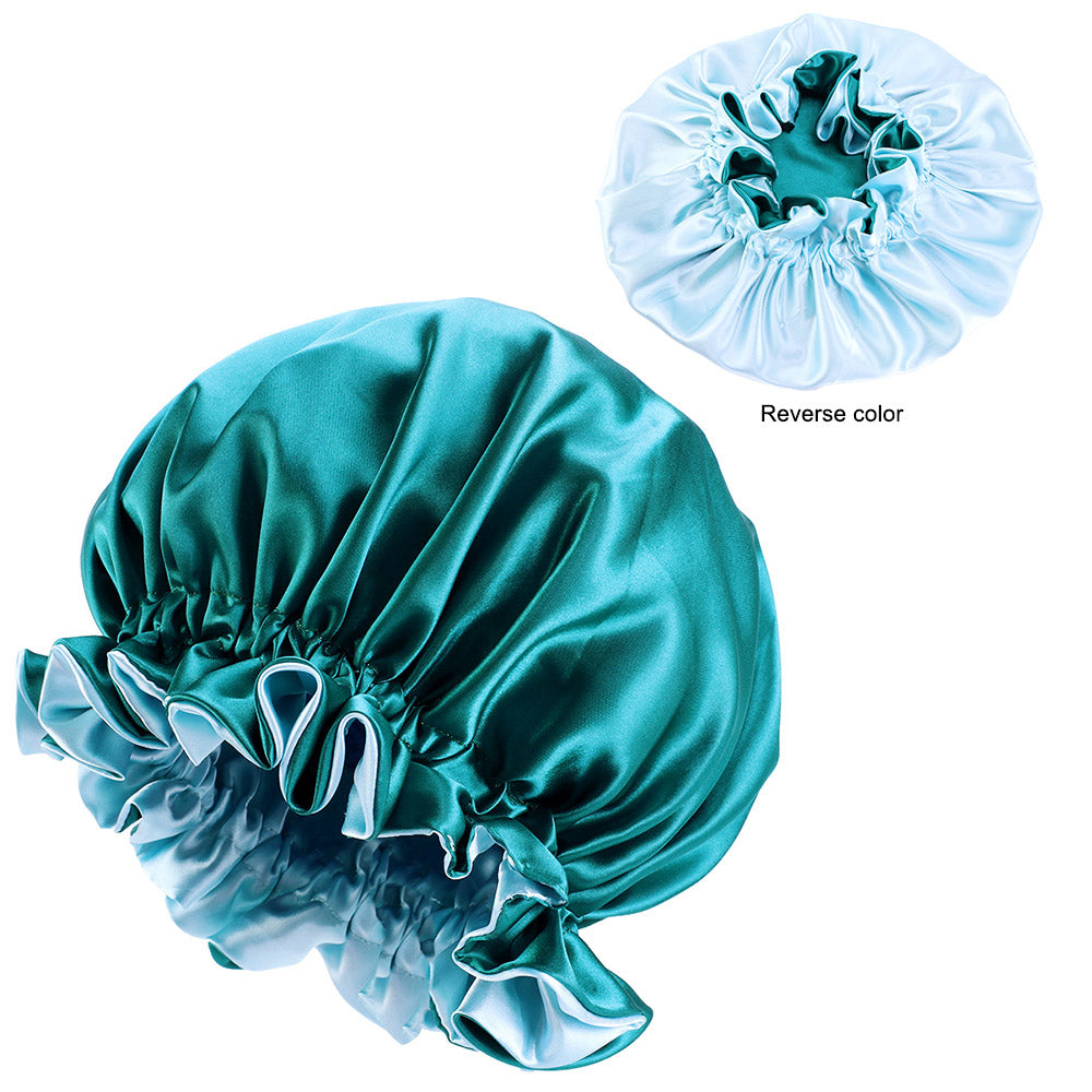 Groene satijnen haarbonnet met rand (omkeerbare satijnen nacht slaapmuts)