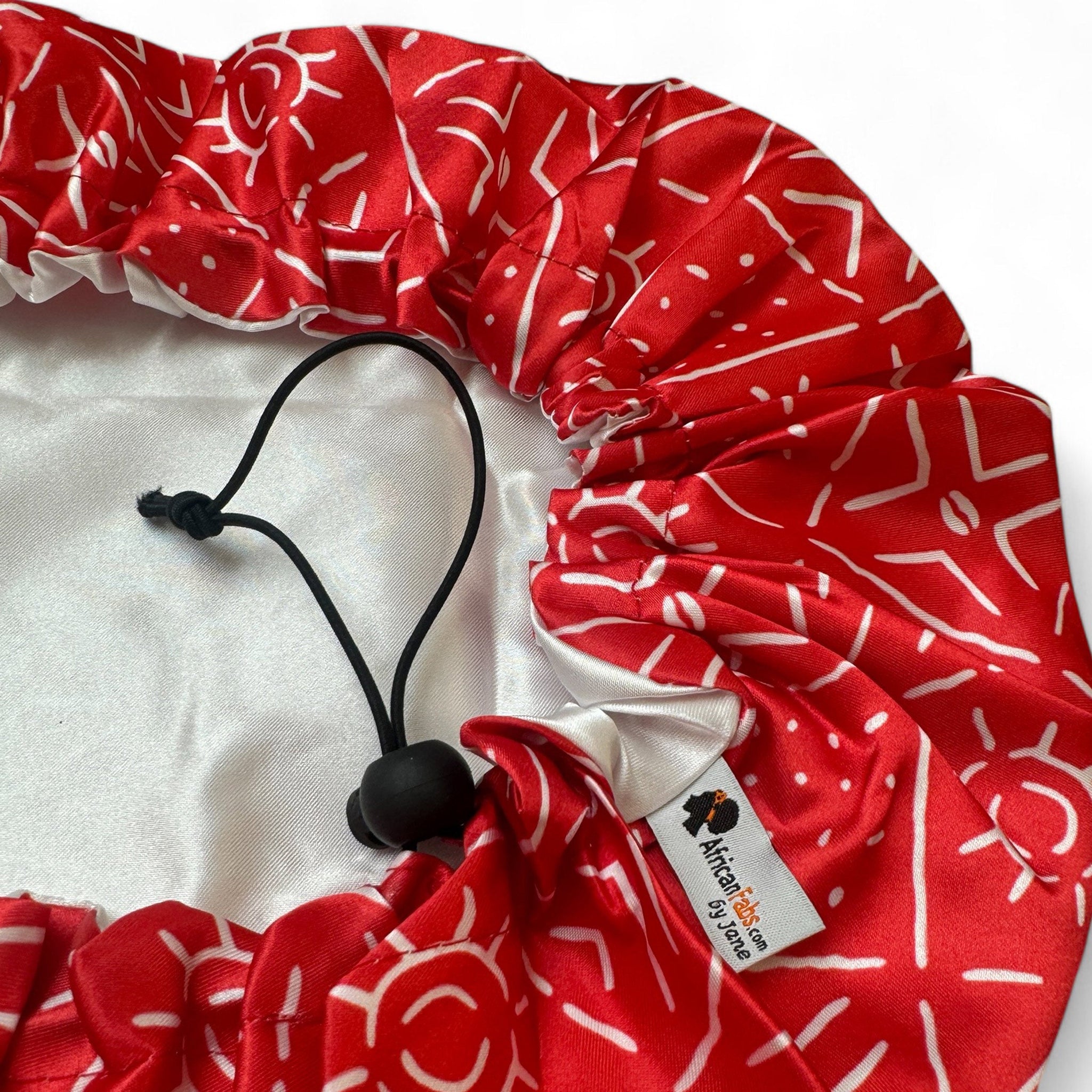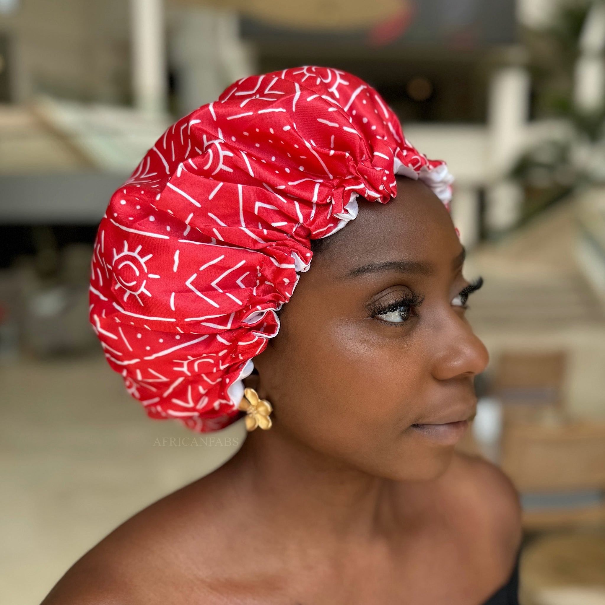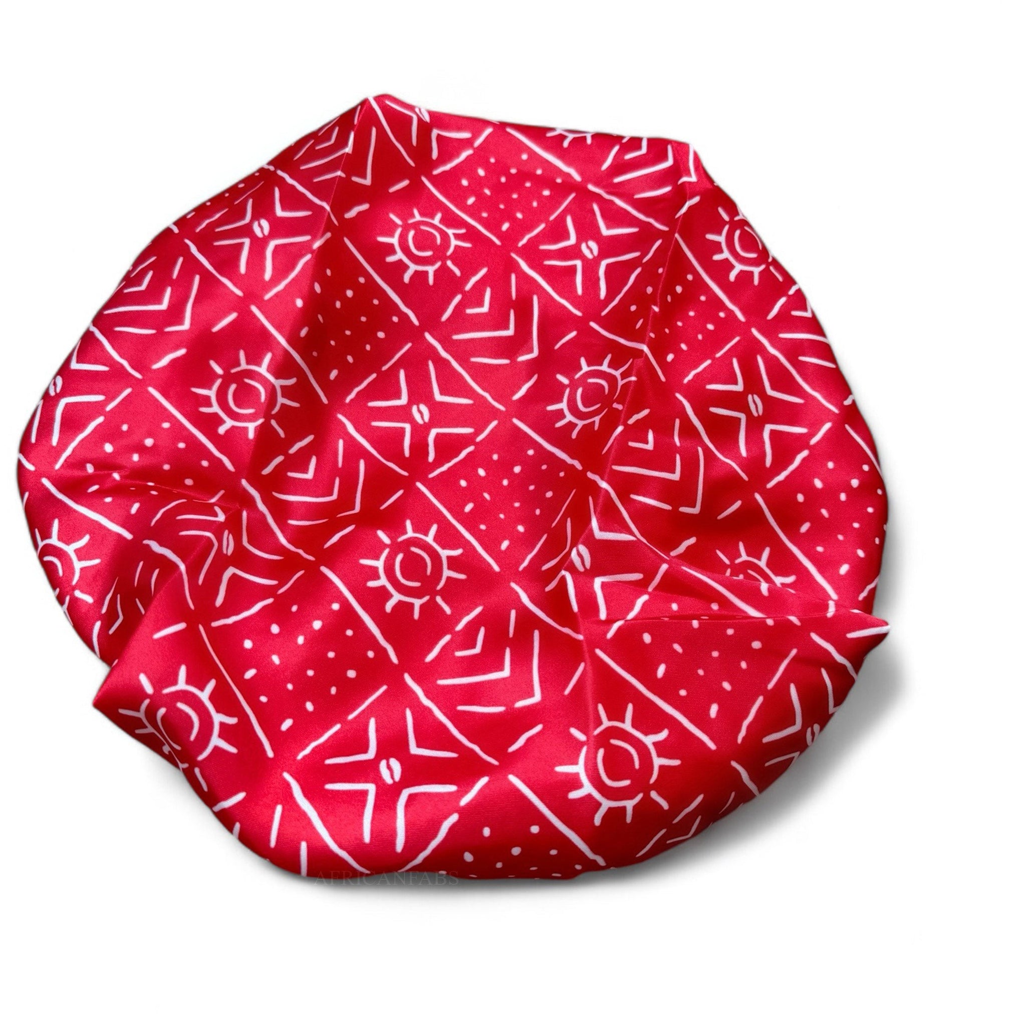 Rode modder / bogolan satijnen haarmuts (verstelbare & omkeerbare satijnen nacht slaapmuts)